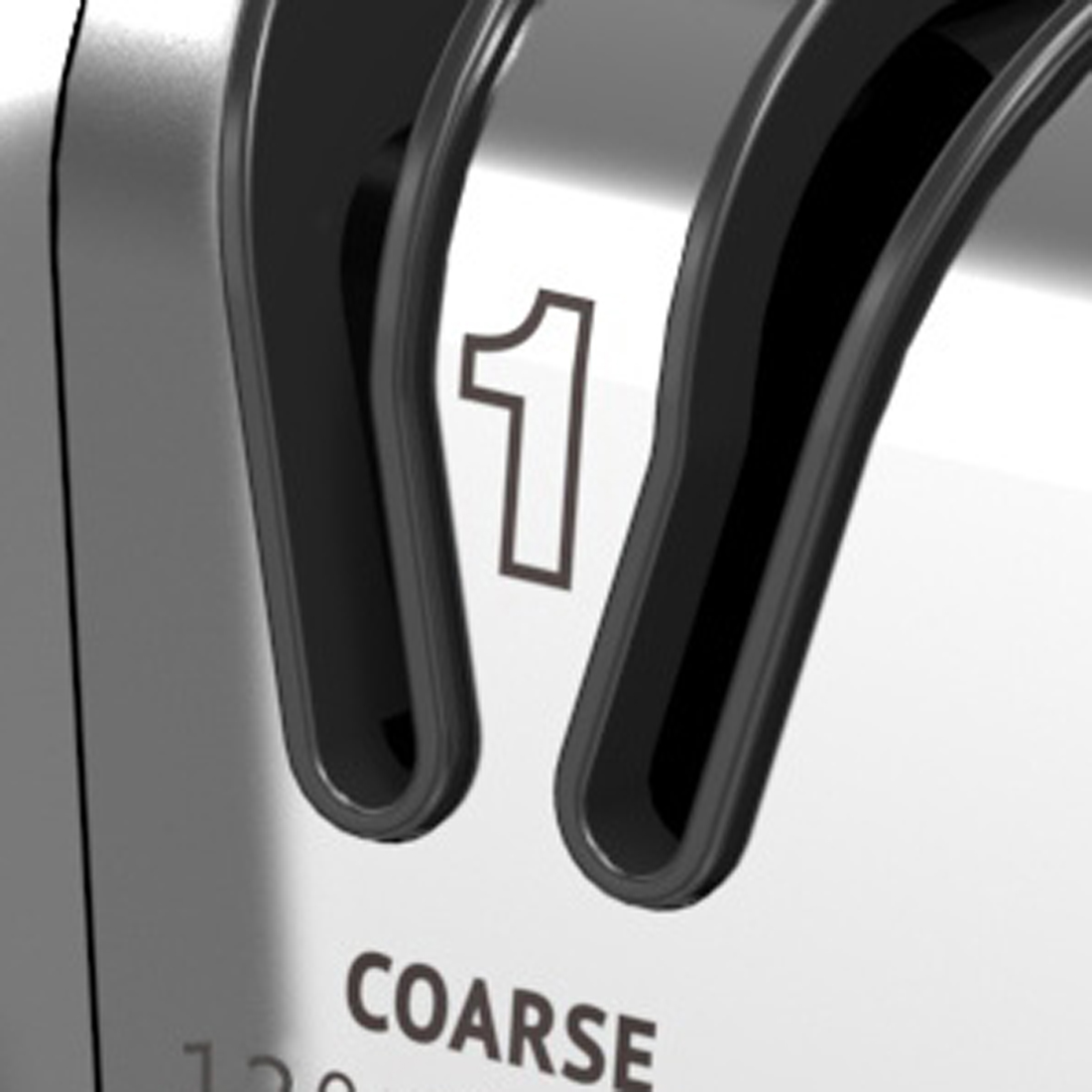 Använd steg 1 (120# diamant) för knivar med skador eller kraftigt slöa blad. Den grova diamantbeläggningen reparerar effektivt och förbereder eggen för finslipning.